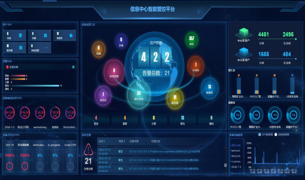 在該系統(tǒng)推進(jìn)過(guò)程中,研發(fā)團(tuán)隊(duì)攻堅(jiān)克難,以數(shù)據(jù)驅(qū)動(dòng)為創(chuàng)新思路,通過(guò)充分的技術(shù)調(diào)研,收斂、編排了礦區(qū)140多個(gè)數(shù)據(jù)資源池的接口數(shù)據(jù),開(kāi)展大數(shù)據(jù)分析進(jìn)一步釋放數(shù)據(jù)潛能,針對(duì)不同業(yè)務(wù)場(chǎng)景制定專屬“體檢方案”,覆蓋了計(jì)算機(jī)網(wǎng)絡(luò)、財(cái)務(wù)、一卡通、礦區(qū)監(jiān)控、OA、人力資源等30多個(gè)業(yè)務(wù)場(chǎng)景。