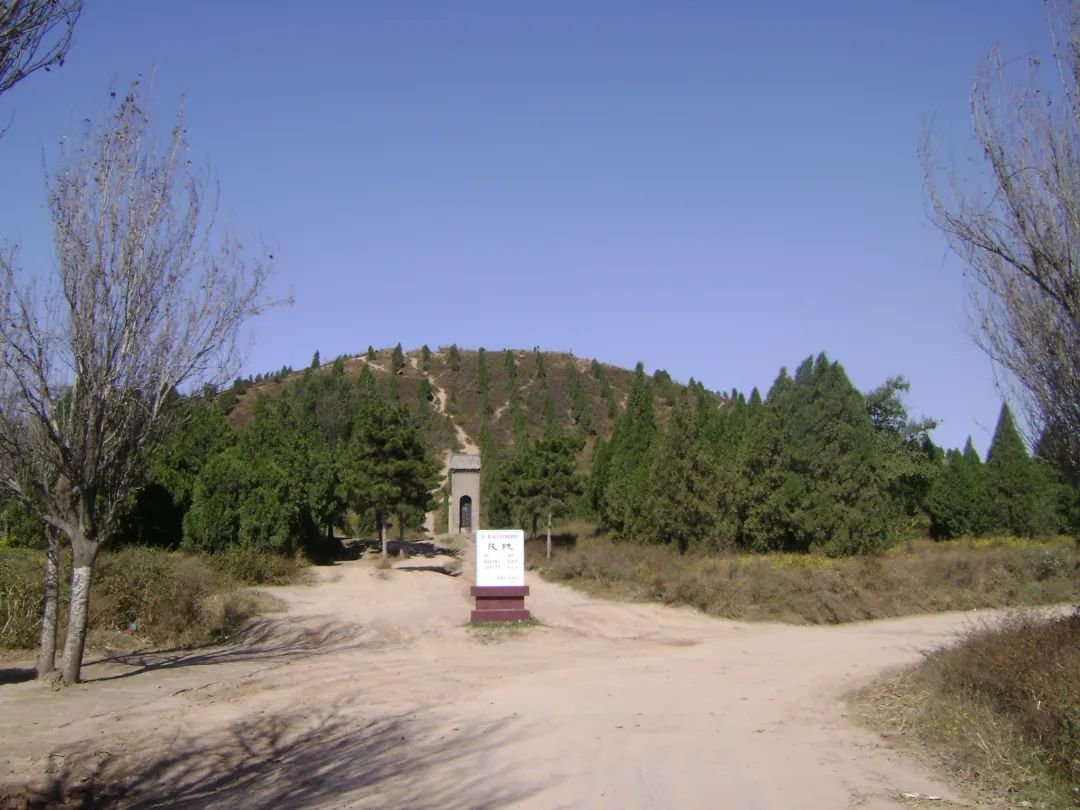 幾經(jīng)周折后,總算是離開了農(nóng)田來到公路之上,路邊的垂柳已經(jīng)迫不及待地舒展開了身姿,將樹蔭灑在路邊,行在其中,愜意舒適,只是近在眼前的茂陵封土步行起來卻如此遙遠,便不由又想起大爺來,若是三蹦子能開到這條公路上來,豈不是要節(jié)約不少力氣了。約莫半個小時,在爬過一個長長的大坡后終于來到封土之下。封土下立有二碑,一為上世紀六十年代所立,書有漢武帝劉徹茂陵字樣,另一通為畢沅碑,和其他一樣,上書俊灑隸書,轉(zhuǎn)過碑身后便到達封土之下,其遍植松柏,只是樹齡看來較為年輕。沿封土向西便是農(nóng)田,麥苗蔥郁,陵園遺址較為明顯,隔著不遠處是另一尊高大封土,看上去恰似分開的兩個大磨盤,那便是被村民們稱之為磨子陵的英陵,里面長眠的即為傾國傾城的李夫人,只是此番前來較為倉促,并未近身拜謁。