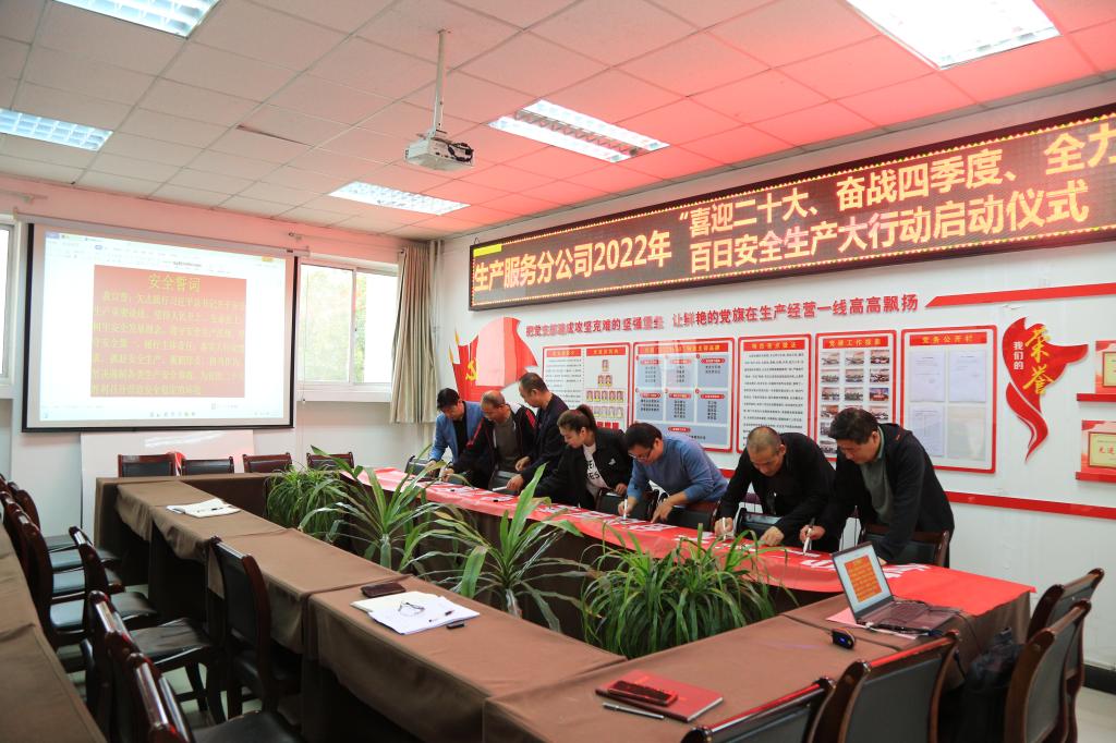 9月9日上午,生產(chǎn)服務(wù)分公司在二樓會議室舉行“喜迎二十大、奮戰(zhàn)四季度、全力保安全”百日安全生產(chǎn)大行動啟動儀式,該公司全體干部職工參加了會議。