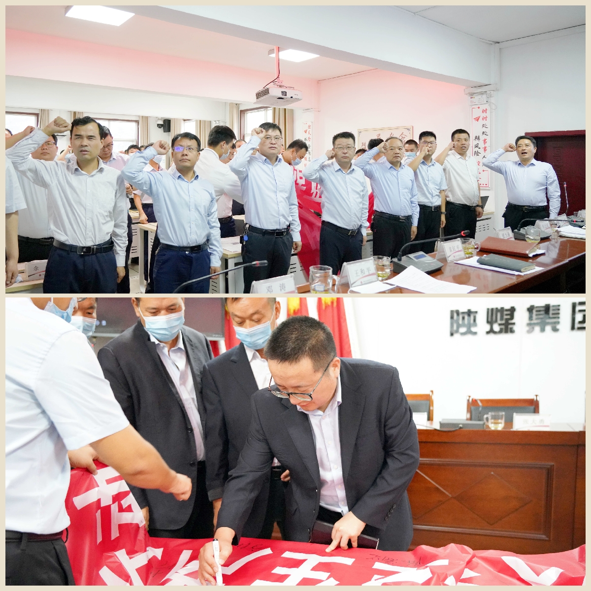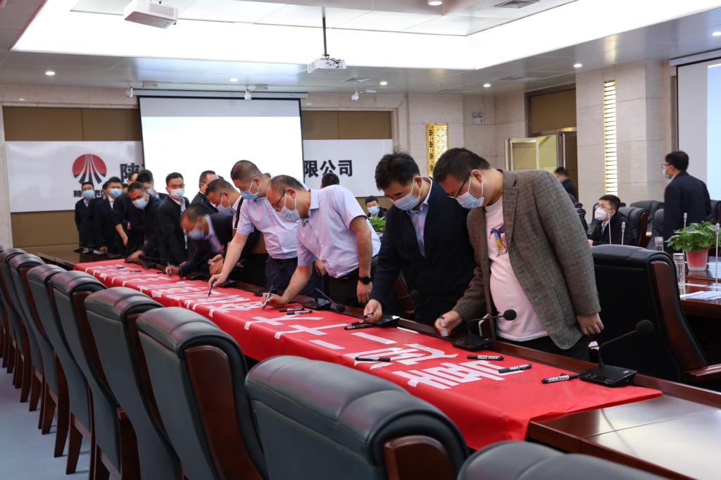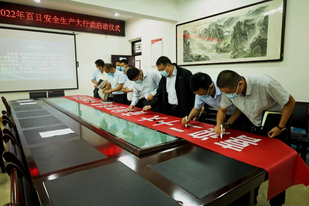 9月19日下午14時,黃陵礦業(yè)新能源開發(fā)有限公司“喜迎二十大、奮戰(zhàn)四季度、全力保安全”百日安全生產(chǎn)大行動啟動儀式在辦公樓五樓會議室舉行。公司領(lǐng)導(dǎo)班子成員、各部門負責(zé)人及分管安全負責(zé)人參加,并在印有“喜迎二十大、奮戰(zhàn)四季度、全力保安全”的橫幅上鄭重簽名,為公司安全生產(chǎn)作出承諾。