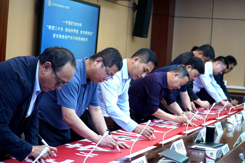 9月13日下午,一號煤礦舉行“喜迎二十大、奮戰(zhàn)四季度、全力保安全”百日安全生產(chǎn)大行動啟動儀式。該礦領(lǐng)導(dǎo)班子成員及科級以上管理干部共計50余人參加啟動會。全體與會人員進行了安全宣誓,并在百日安全生產(chǎn)大行動橫幅上寫下安全寄語并鄭重簽名。