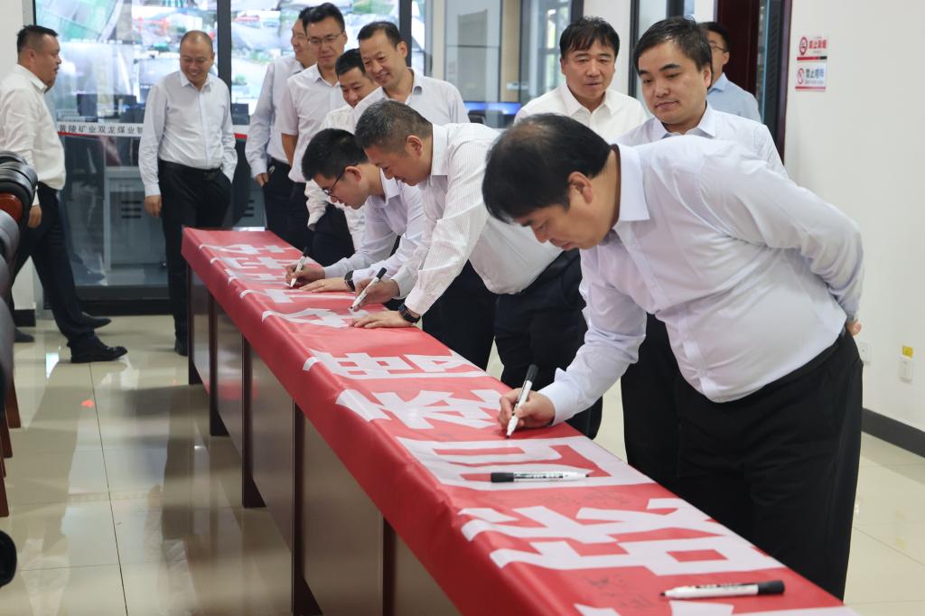 9月21日上午,雙龍煤業(yè)在調(diào)度指揮中心舉行2022年“喜迎二十大、奮戰(zhàn)四季度、全力保安全”百日安全生產(chǎn)大行動啟動儀式。綜采隊、通防隊做了表態(tài)發(fā)言,參會人員在印有“喜迎二十大、奮戰(zhàn)四季度、全力保安全”的橫幅上鄭重簽名。
