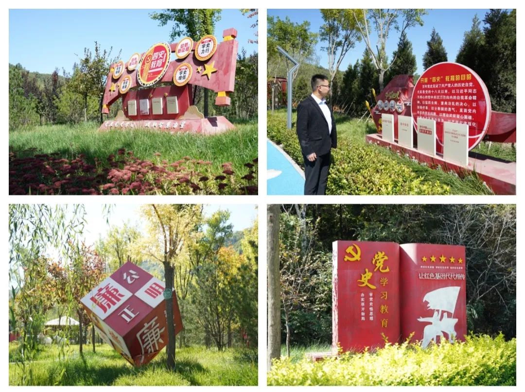 與火紅的楓葉相映生輝是園區(qū)內(nèi)各式各樣的紅色造型,瑞能煤業(yè)的黨建主題微公園,環(huán)繞著公園內(nèi)“寶葫蘆”形狀的道路,設(shè)計安裝有紅色黨建主題標(biāo)識1處、黨建紅色造型共10余處,并以圖文并茂的形式,形象生動地向職工家屬們宣傳了紅色文化。