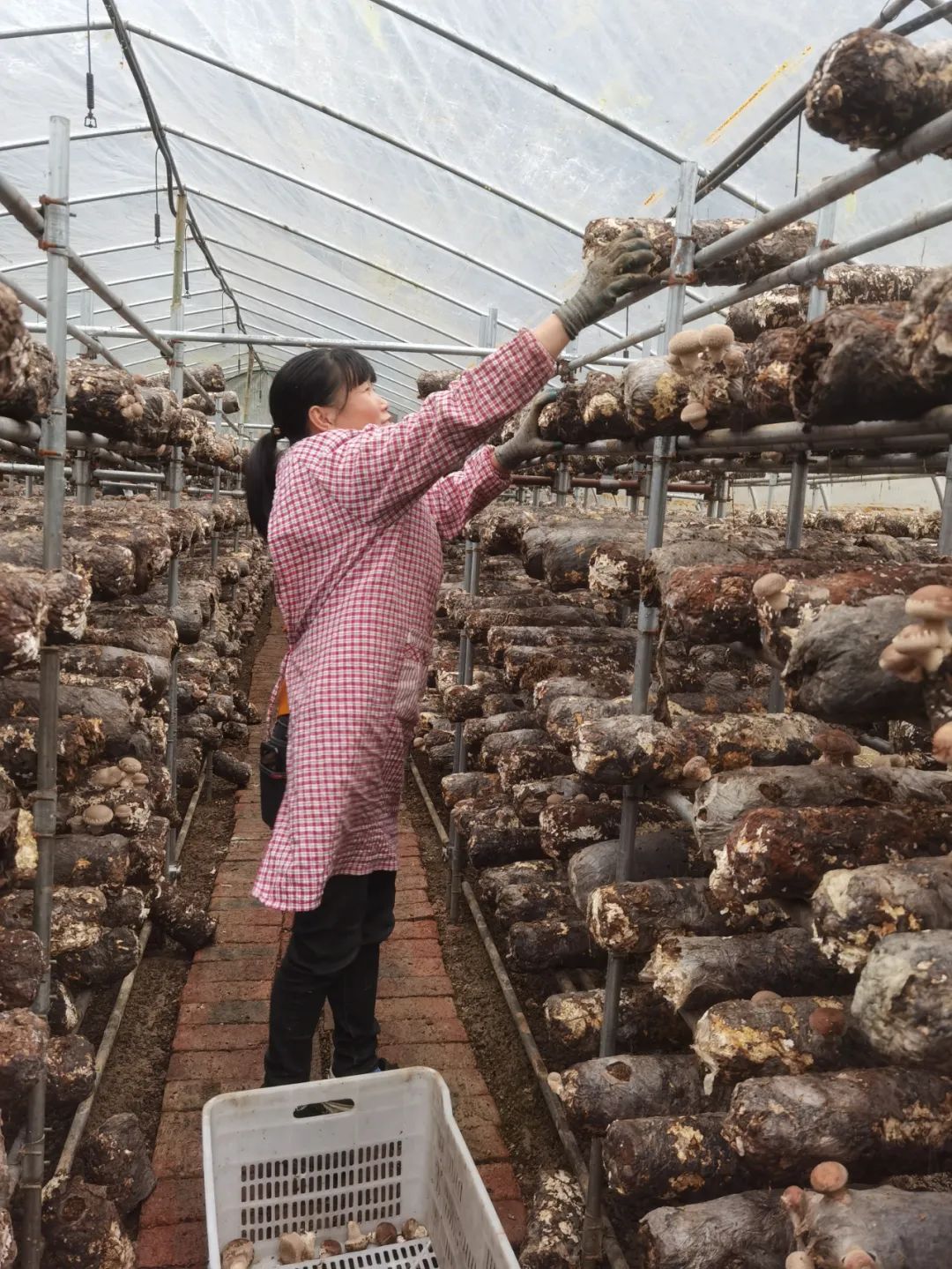 走進該村香菇種植大棚基地,遍地的香菇菌棚猶如座座小城堡密布田間。眼下正值出菇時節(jié),菌棚內(nèi)滿架的香菇菌棒菇朵競放、長勢喜人,務(wù)工村民推著小車兒穿梭于菌棚間,采摘香菇的村民個個忙的不亦樂乎,裝筐、搬運、烘干、打包,一派繁忙的景象。