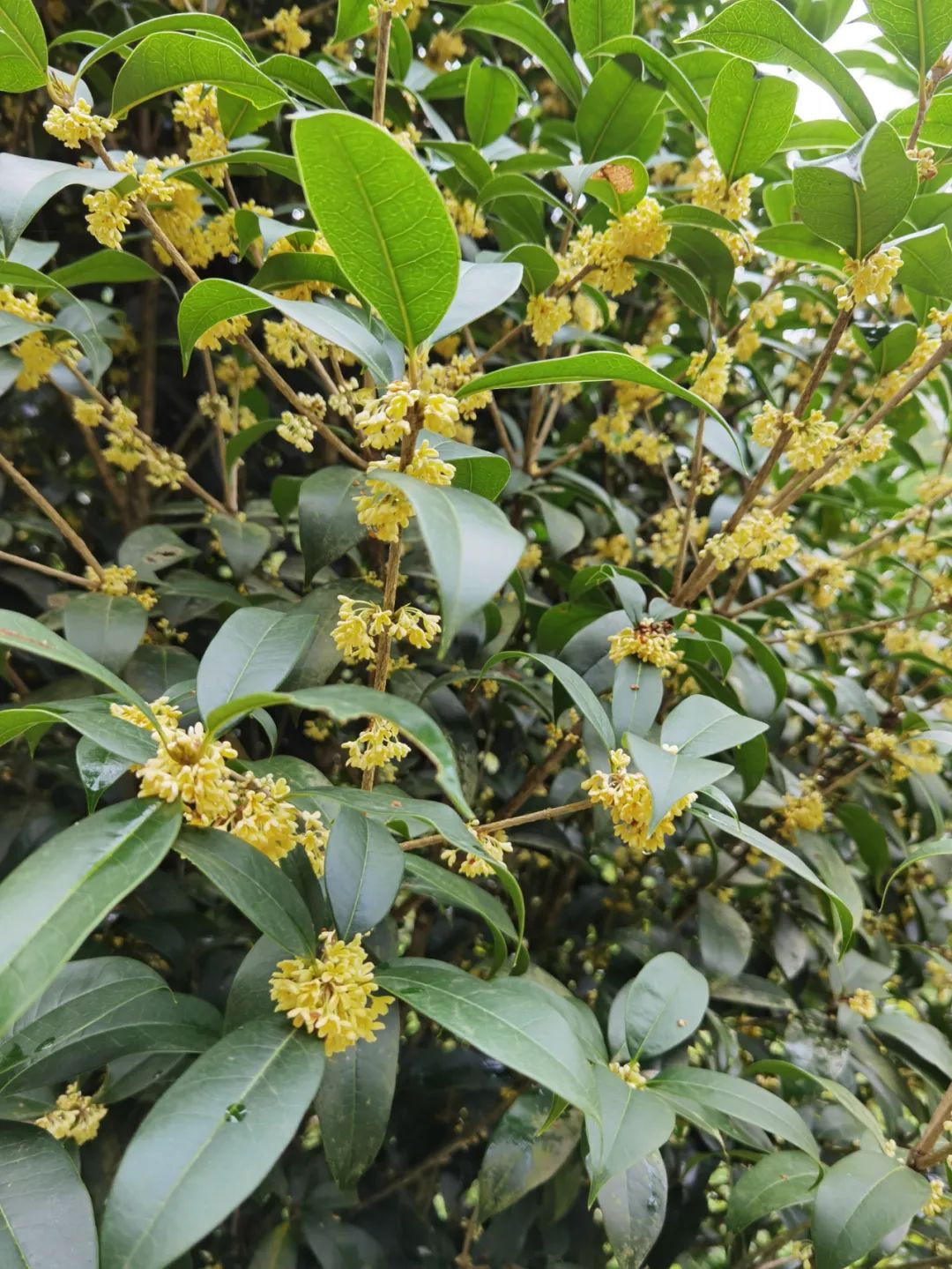 常言說(shuō)“八月桂花香”,按往年的慣例,中秋節(jié)前就已經(jīng)花香四溢了,而今年因?yàn)轶E減的氣溫和連日的陰雨,讓桂花的花期推后了,花香也沒(méi)有晴天的時(shí)候那么濃烈。還好陰雨未能阻礙桂花綻放枝頭的倩影,而雨天里略顯清淡的花香更給人帶來(lái)了一種低調(diào)的嗅覺(jué)享受。這份類似于二月春桂的清雅,是那種山野寂靜的芬香,有一種禪意的清凈之美,是褪去繁蕪,一種隱逸的安閑。