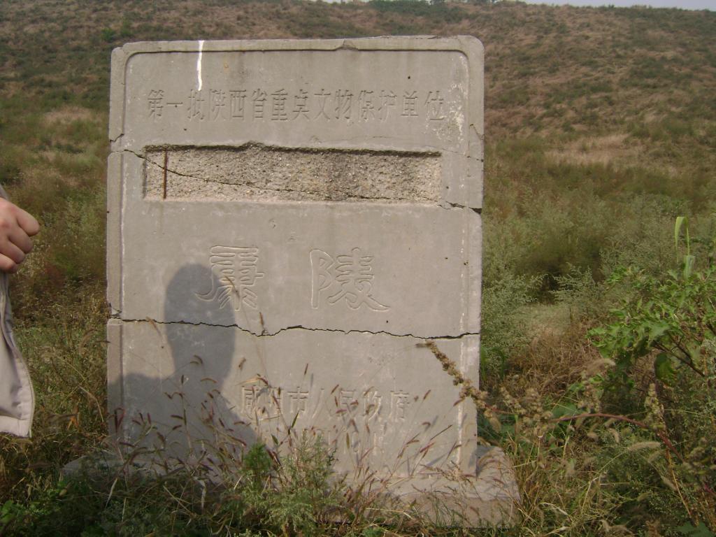 巨大的康陵封土大致看去,為一個(gè)長(zhǎng)方形的覆斗形,南北略長(zhǎng),東西略窄,荒草叢生,東北角有一條寬約兩米的土路可以登頂,其上車轍清楚,粗略去看,有汽車印也有摩托車印,只是不知道是何人而為。但康陵也有奇特之處,封土上半部分較為陡峭,底部卻顯得非常平緩,由此推斷,只因常年耕種所致,在東側(cè)封土下的草叢中,畢沅手寫之碑?dāng)酁閹捉兀绫粺o(wú)情的時(shí)光折斷一般,散落在地下無(wú)人問(wèn)津,斷碑之上可清楚地看到漢元帝字樣,看來(lái),這也是一個(gè)錯(cuò)碑無(wú)疑。殘碑旁的水泥文保碑已剝落殘損,一行字被整齊地挖掉,照理說(shuō),用水泥做一個(gè)文保碑并不是大事,不知是何緣故,寧要此已有殘損的錯(cuò)碑,也未見(jiàn)有一新碑,難道是這墓主人已經(jīng)被世人所遺忘了嗎?