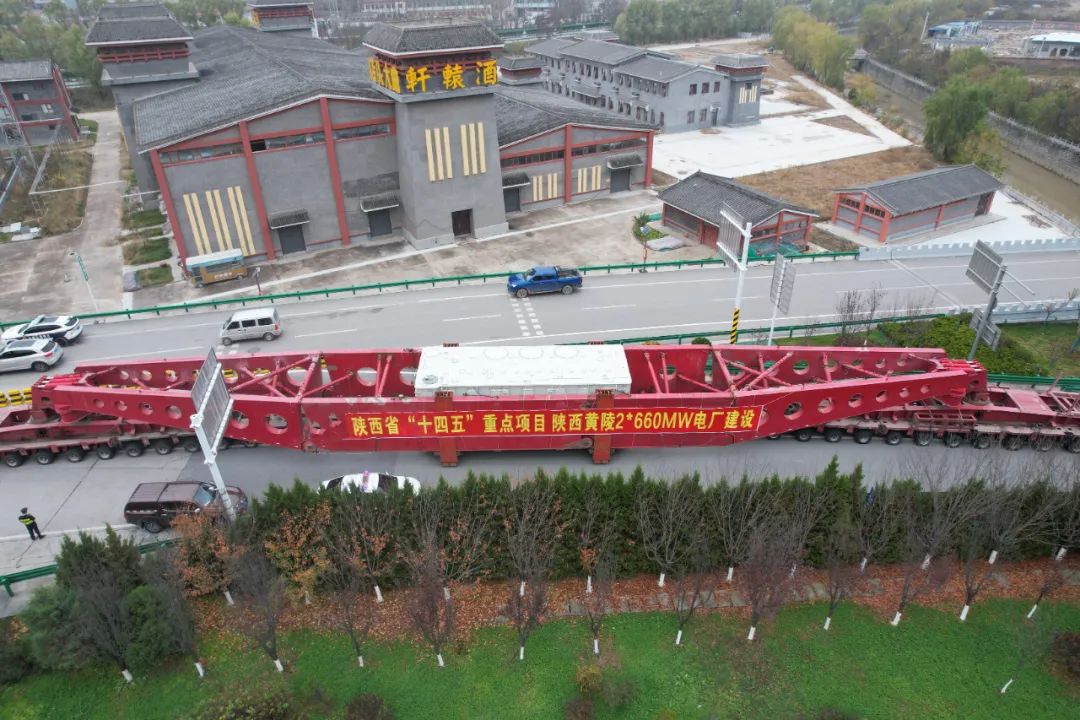 據(jù)悉,本次運輸?shù)?號主變壓器總重330噸,總?cè)萘繛?50兆伏安,是2×660MW電廠項目1號機組的核心設(shè)備,由西安西電變壓器有限責(zé)任公司生產(chǎn)并發(fā)運。在新冠肺炎疫情的影響下,面對工期緊、任務(wù)重的現(xiàn)有局面,黃陵發(fā)電公司同廠家、運輸單位團結(jié)協(xié)作、密切配合,對沿線所經(jīng)過的橋梁、涵洞等建筑物進行充分的調(diào)查和論證,對運輸方案進行嚴格審查,在多個部門協(xié)同護航下,設(shè)備安全運至現(xiàn)場。
