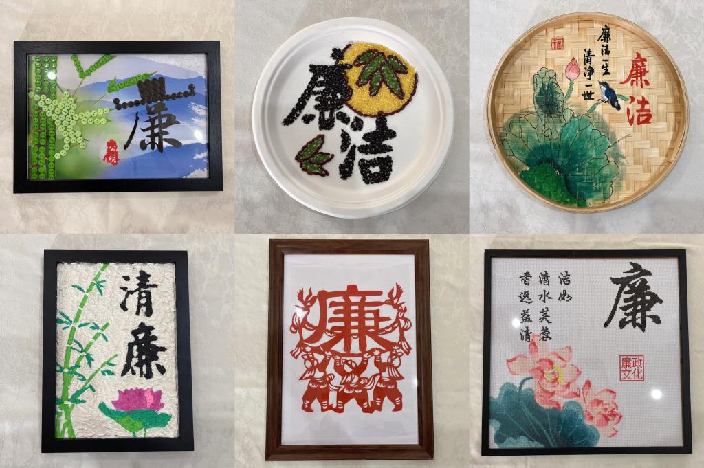“還有這幅泥漿廉潔畫,利用泥漿材料繪制挺拔不屈的翠竹,配有象征廉潔的蓮花,別具創(chuàng)意,真是泥漿‘廉’翠竹,清風伴我行??!”安全保障部宋師傅幽默地說道。