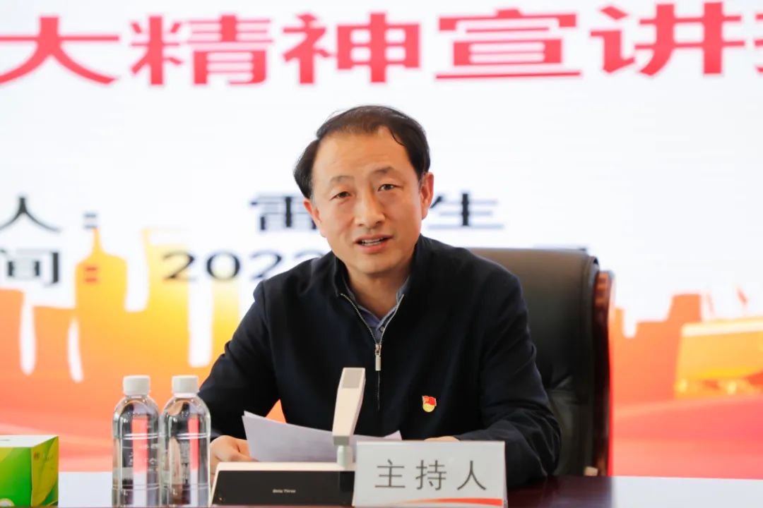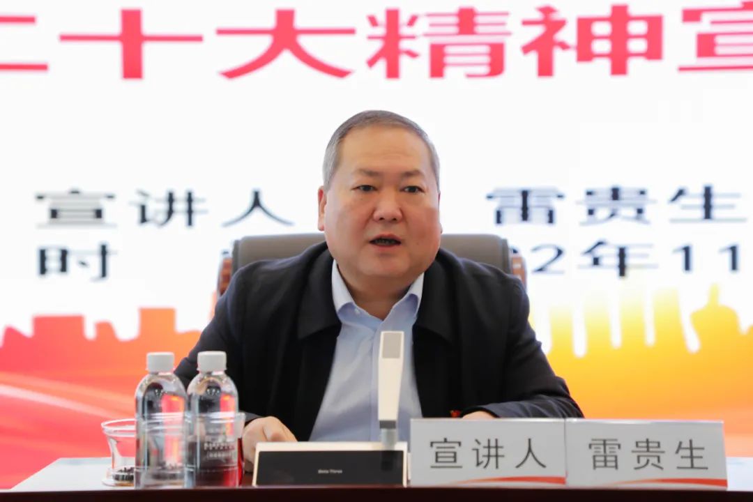 雷貴生圍繞“黨的二十大的主題、主要成果”“關(guān)于過(guò)去5年的工作和新時(shí)代10年的偉大變革”“關(guān)于馬克思主義中國(guó)化時(shí)代化”“關(guān)于中國(guó)式現(xiàn)代化”“關(guān)于全面建設(shè)社會(huì)主義現(xiàn)代化國(guó)家的目標(biāo)任務(wù)”“關(guān)于堅(jiān)持黨的全面領(lǐng)導(dǎo)和全面從嚴(yán)治黨”“關(guān)于應(yīng)對(duì)風(fēng)險(xiǎn)挑戰(zhàn)”七方面內(nèi)容,對(duì)黨的二十大提出的新思想、新觀點(diǎn)、新要求進(jìn)行了生動(dòng)細(xì)致、深入淺出的宣講,并對(duì)公司學(xué)習(xí)宣傳貫徹黨的二十大精神進(jìn)行了安排部署。