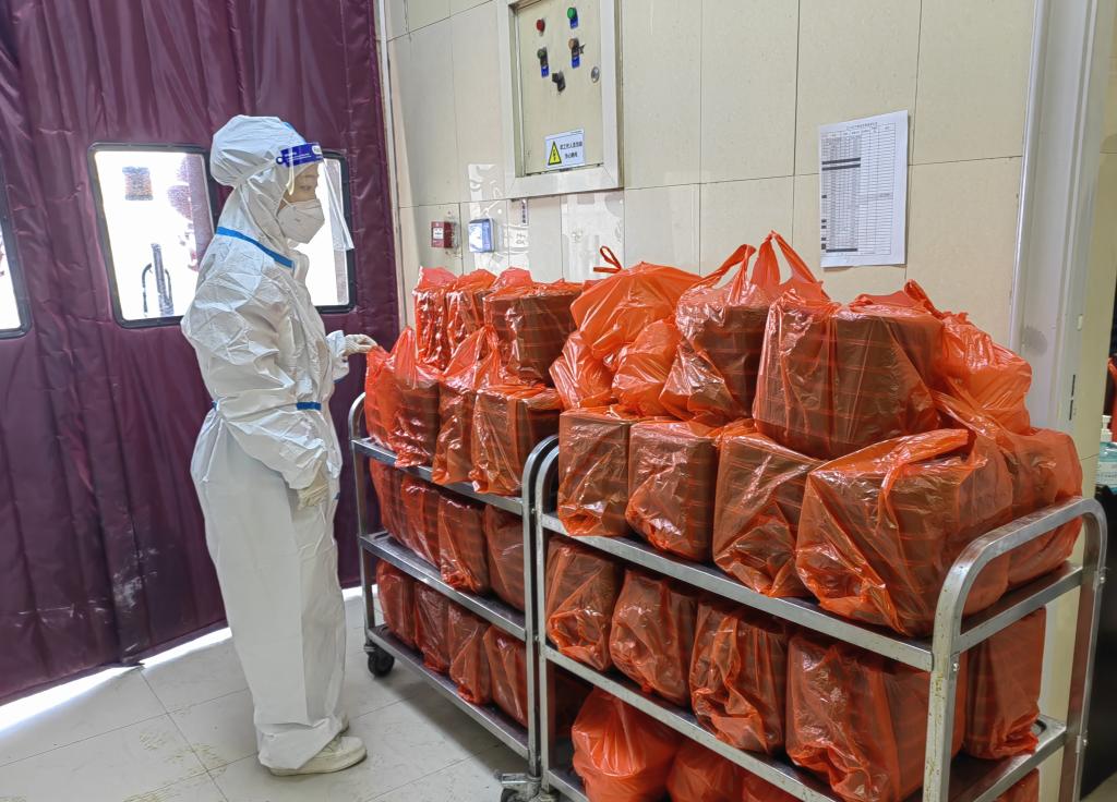 “早飯、午飯、晚飯全部為盒裝,工作量增加到原來兩倍,后勤服務(wù)到崗職工人數(shù)只有正常上班的一半,為保證所有職工按時吃上飯,他們比平日提前2小時起床,凌晨3點(diǎn)多就上崗開火,開始一天的工作,三餐之間不敢停頓。從11月25日到12月6日,送出了27000多份盒飯”。孫治國是食堂管理人員,疫情防控期間,1000多人的后勤保障像一座山樣壓著他?!懊刻煸缟弦?000多個饅頭、包子、油餅等,中午要保證四個菜兩葷兩素,晚飯要有飯有菜有肉有湯,為了確保駐礦都能人員吃上熱乎飯,幾個廚師加班加點(diǎn)蒸米飯、熬稀飯、切菜、炒菜、裝盒,全部點(diǎn)對點(diǎn)派送到位??紤]到營養(yǎng)搭配均衡,礦上集中統(tǒng)一采買了蔬菜水果、飲品點(diǎn)心等,確保值守人員能夠營養(yǎng)用餐,安心工作?!睂O治國說道。
