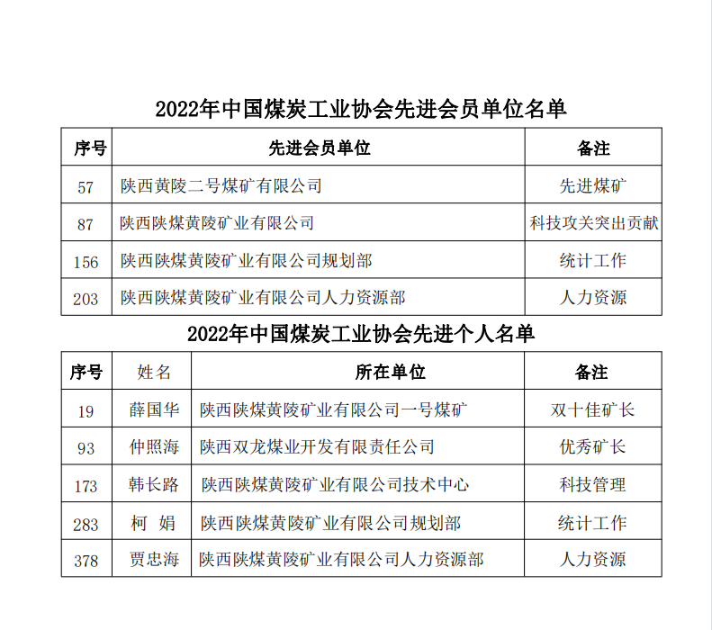 近日,中國煤炭工業(yè)協(xié)會(huì)公布《關(guān)于表彰2022年先進(jìn)會(huì)員單位和先進(jìn)個(gè)人的決定》,對(duì)在煤炭生產(chǎn)、科技創(chuàng)新、標(biāo)準(zhǔn)化管理、統(tǒng)計(jì)工作、人力資源、檔案管理、兩化融合和煤炭洗選等領(lǐng)域涌現(xiàn)出來的“先進(jìn)會(huì)員單位”和“先進(jìn)個(gè)人”進(jìn)行了表彰。