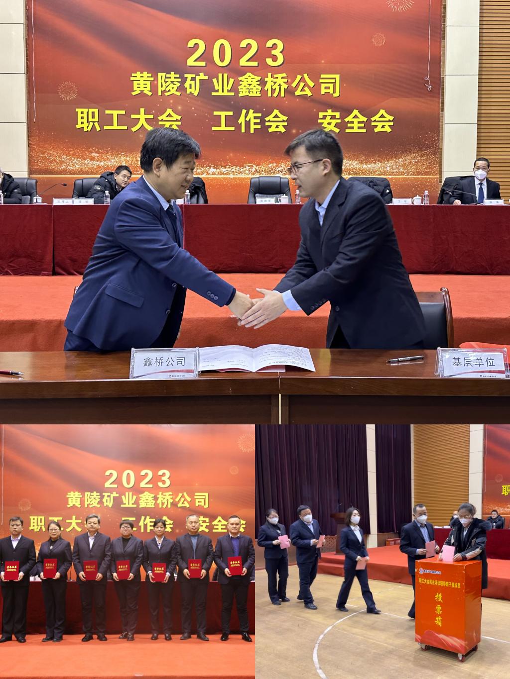 會(huì)議聽(tīng)取了鑫橋公司2023年經(jīng)濟(jì)運(yùn)行方案及職工薪酬分配情況說(shuō)明,簽訂目標(biāo)責(zé)任書(shū)和安全生產(chǎn)目標(biāo)責(zé)任書(shū),通報(bào)2022年職工大會(huì)提案解答及2023年職工大會(huì)提案征集情況說(shuō)明,民主評(píng)議了公司領(lǐng)導(dǎo)班子及成員,現(xiàn)場(chǎng)表彰了2022年度先進(jìn)單位、先進(jìn)集體及先進(jìn)工作者,獲獎(jiǎng)代表作了表態(tài)發(fā)言,對(duì)大會(huì)報(bào)告及材料進(jìn)行了舉手表決,并通過(guò)大會(huì)決議。