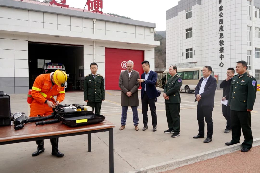 交流期間,潘嘉博先后到公司的智慧中心、一號煤礦智能化實訓基地、智能指揮調度控制中心、應急救援中心,了解了公司智能化系統(tǒng)建設應用情況,聽取了一號煤礦智能化礦井總體建設情況和亮點,觀看了指戰(zhàn)員個人防護裝備操作等項目的展示,交流了固定式和移動式氣體檢測系統(tǒng)、呼吸防護、消防設備等個人安全防護和救援設備的使用情況。