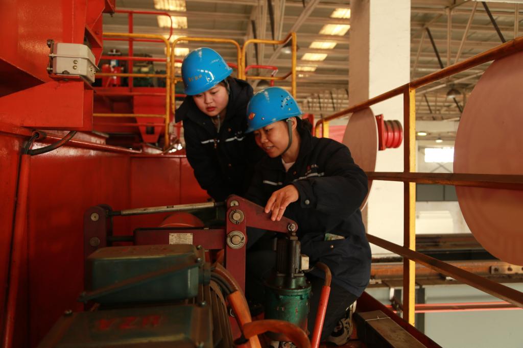 “成成腦瓜機靈,學東西也快,現(xiàn)在可以獨自操作行車起吊設(shè)備了。”師傅李亞鋒夸獎著她的小徒弟?!皫煾怠熊嚧┽樢€’的絕技絕活還沒有給我教呢,學到精髓才算是出師。”尹成成看著一旁的師傅說,兩人爽朗地笑了起來。
