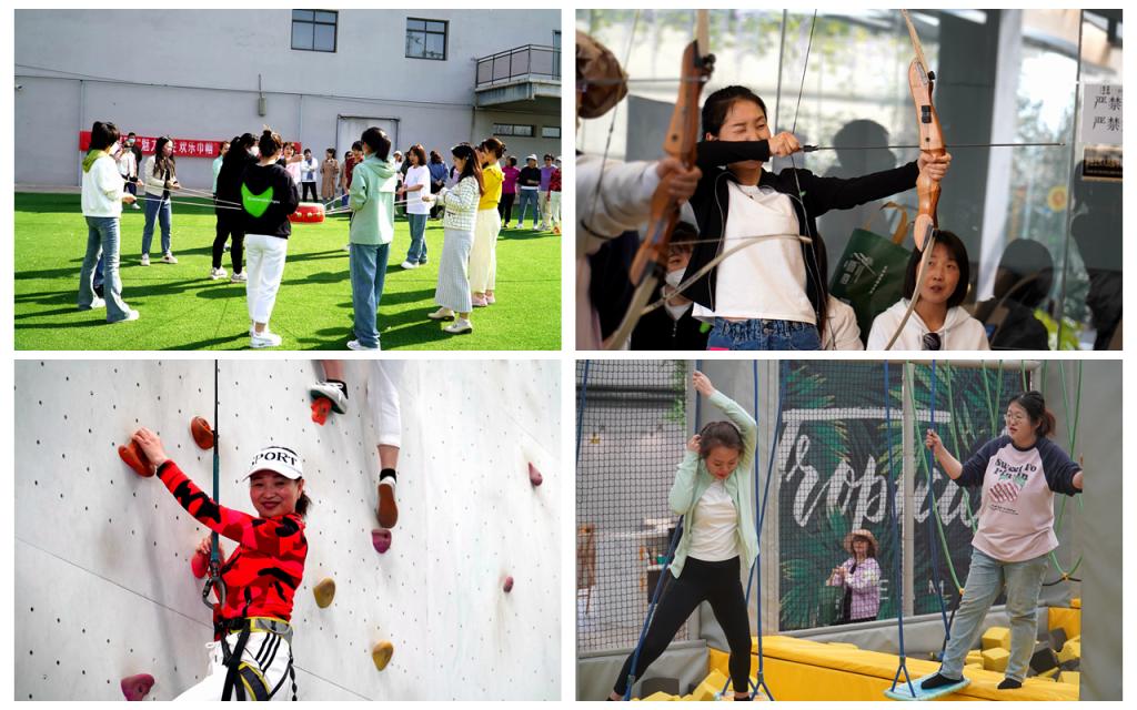 伴隨著春日暖陽,女職工們手擎企業(yè)旗,步履堅定、整齊劃一地走進活動場地。多名女職工自覺分為三個隊伍展開拓展行動。四場比賽均利用道具,考驗大家的相互配合、協(xié)同作戰(zhàn)能力。賽前,各隊隊長積極動員部署,建立“一路狂飆”“霸氣女王”“無敵少女”三個戰(zhàn)隊,隨后在專業(yè)教官的引導(dǎo)下,大家群策群力、“妙計頻出”,或利用口號統(tǒng)一節(jié)奏,或選出最佳隊員挑起“大梁”,相繼完成了“珠行千里、擊鼓顛球、攀巖、射箭”等一系列拓展項目。