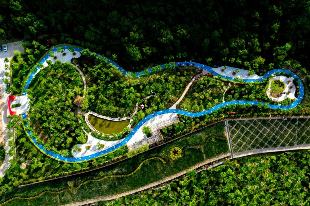 治理后的瑞能煤業(yè)矸石山黨建主題微公園+生態(tài)大棚,總面積約26176平方米,其中,黨建主題微公園綠化面積11800平方米,邊坡綠化管護(hù)面積6360平方米,生態(tài)大棚面積3110平方米,菜地道路及綠化區(qū)面積4906平方米。共栽植各類喬木460株、灌木35350株、常青樹387株、草坪4580平方米。昔日排矸場(chǎng)“搖身一變”成為與周邊林區(qū)融為一體的“林蔭綠肺”。