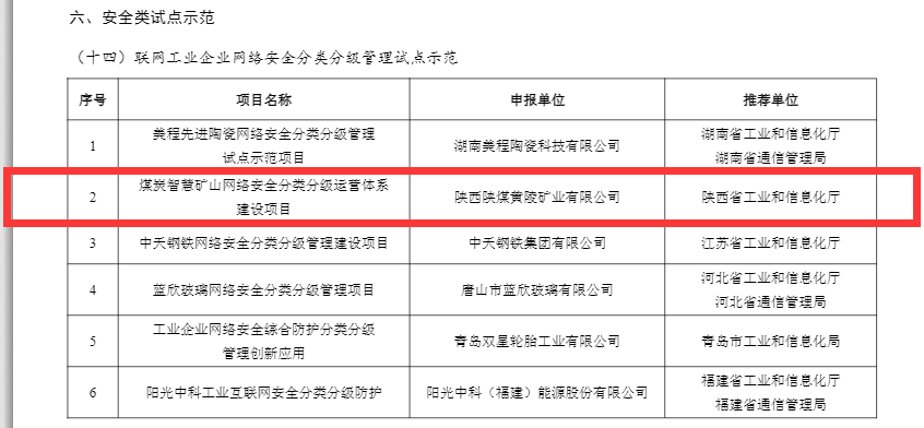 近日,工信部公示了2022年度國家級工業(yè)互聯(lián)網(wǎng)試點示范名單。黃陵礦業(yè)公司主導(dǎo)建設(shè)的《煤炭智慧礦山網(wǎng)絡(luò)安全分類分級運營體系建設(shè)項目》入選國家級聯(lián)網(wǎng)工業(yè)企業(yè)網(wǎng)絡(luò)安全分類分級管理試點示范項目名單。獲此殊榮,標志著黃陵礦業(yè)近年來在工業(yè)互聯(lián)網(wǎng)領(lǐng)域的縱深耕耘,在加快工業(yè)互聯(lián)網(wǎng)核心能力的體系化建設(shè)上又邁上新臺階。