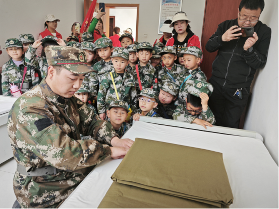 活動中,孩子們還走進了指戰(zhàn)員的寢室,看著干凈整潔的環(huán)境,大家都為之贊嘆。消防員叔叔向孩子們展示了“豆腐塊”是怎樣疊出來的,孩子們不禁鼓起掌來歡呼:“向消防員叔叔學(xué)習(xí)!”