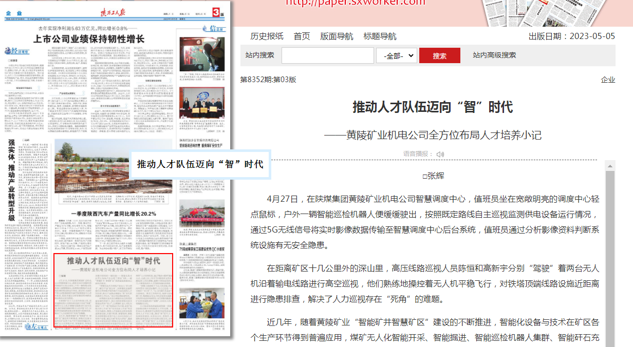 近幾年,隨著黃陵礦業(yè)“智能礦井智慧礦區(qū)”建設(shè)的不斷推進,智能化設(shè)備與技術(shù)在礦區(qū)各個生產(chǎn)環(huán)節(jié)得到普遍應(yīng)用,煤礦無人化智能開采、智能掘進、智能巡檢機器人集群、智能矸石充填、5G專網(wǎng)、智能云平臺上線運行,實現(xiàn)井下所有設(shè)備地面集中控制和一鍵切換……智能化技術(shù)應(yīng)用讓傳統(tǒng)產(chǎn)業(yè)實現(xiàn)了質(zhì)變飛躍,一幅“智能礦井智慧礦區(qū)”高質(zhì)量發(fā)展畫面已展現(xiàn)在眼前。