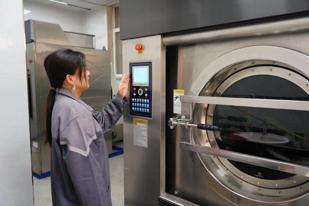 據(jù)了解,升級改造后的洗衣房相比原來,不僅單次洗衣量是曾經(jīng)的兩倍,而且洗得更加干凈,新增的紫外線消毒功能讓職工穿衣更加舒心放心。