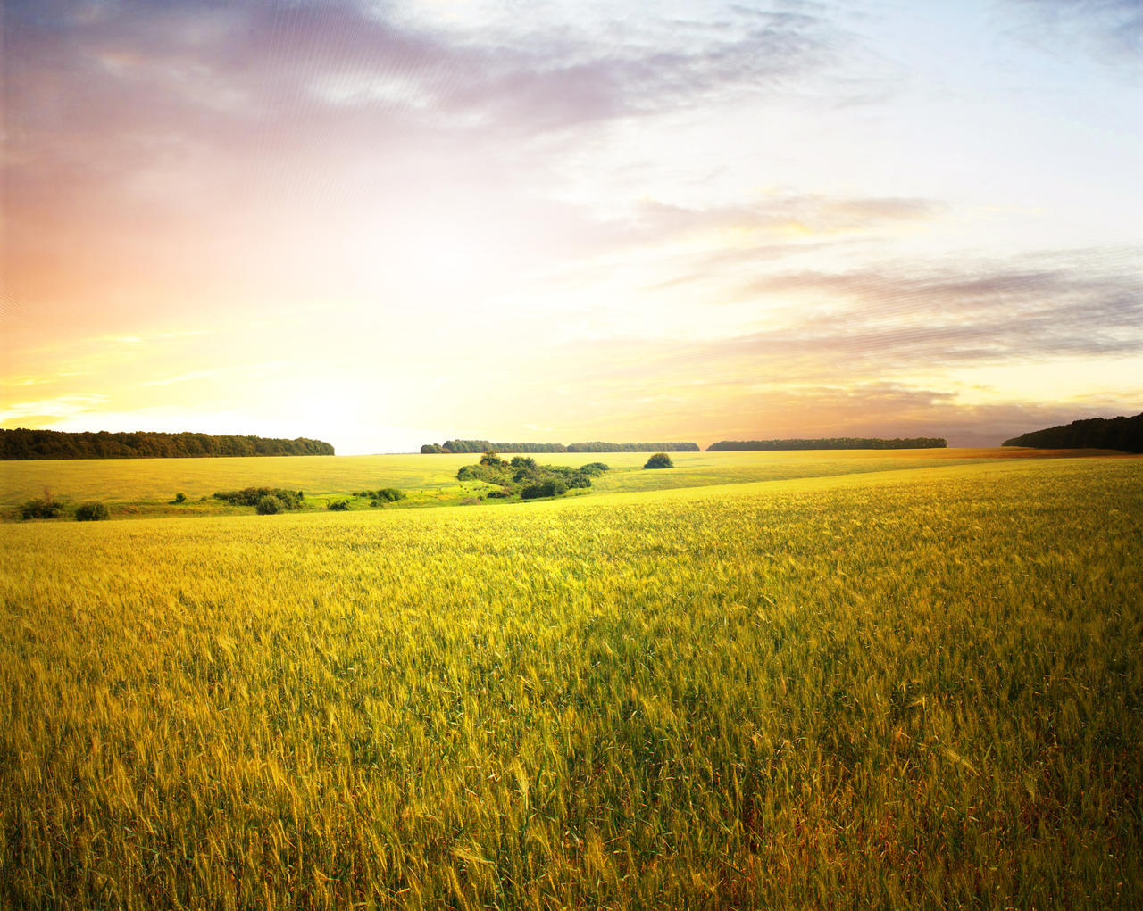 胭紅的夕陽涂抹在歡快豐盈的田野上