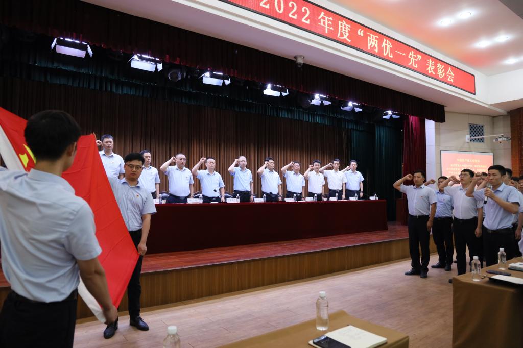 永葆初心心向黨,砥礪奮進(jìn)續(xù)華章。為慶祝中國共產(chǎn)黨成立102周年,動員廣大黨員干部不忘初心、牢記使命。7月12日下午,二號煤礦在辦公樓十樓會議室召開2021-2022年度“兩優(yōu)一先”表彰會。該礦領(lǐng)導(dǎo)班子成員,各部門負(fù)責(zé)人,各基層黨支部書記、基層黨員代表、受到表彰先進(jìn)集體和先進(jìn)個(gè)人以及12名新發(fā)展黨員共80余人參加了會議。