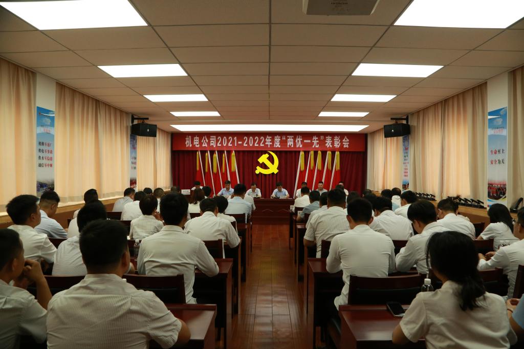 7月12日,在中國共產(chǎn)黨成立102周年之際,機電公司召開2021-2022年度“兩優(yōu)一先”表彰會。該公司領(lǐng)導(dǎo)班子成員、機關(guān)部室負(fù)責(zé)人、各車間黨政負(fù)責(zé)人、受表彰的先進(jìn)集體、先進(jìn)個人代表和黨員代表共計60余人參加會議。