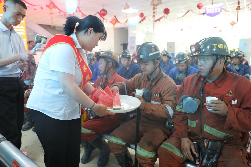 酷暑時(shí)節(jié),烈日炎炎。為認(rèn)真做好夏季職工勞動(dòng)保護(hù),保障職工身體健康及安全,切實(shí)維護(hù)職工的勞動(dòng)安全健康權(quán)益。由家屬協(xié)管員和廣大志愿者組成的送清涼服務(wù)隊(duì),分別走進(jìn)綜合樓一樓、地面機(jī)修車間和儲(chǔ)煤設(shè)施改造項(xiàng)目工地等高溫作業(yè)場所,將新鮮芒果、水蜜桃、黑布李、飲料等慰問物資送到堅(jiān)守在工作崗位的職工手中,為他們送去一絲清涼。