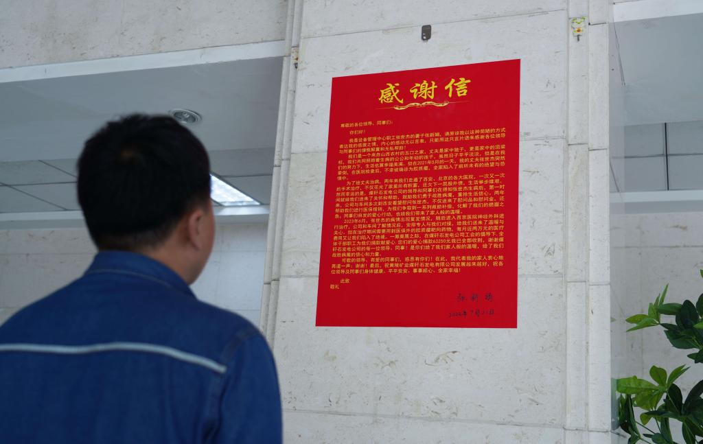 寫信人是該公司設(shè)備管理中心職工張世杰的妻子張新娟。張世杰于2021年5月被確診為腦部重疾后,輾轉(zhuǎn)多家醫(yī)院,歷經(jīng)多次手術(shù)及同步放化療治療,仍未達(dá)到康復(fù)效果,目前依然在接受進(jìn)一步的治療。