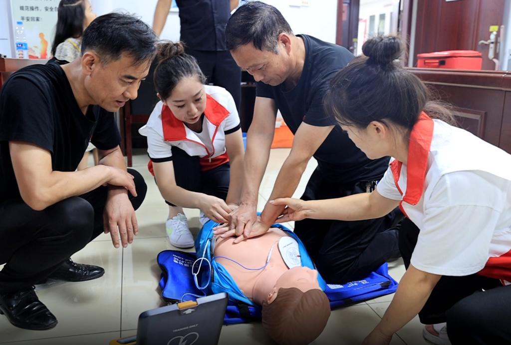 “通過這次培訓(xùn),讓我又學(xué)到了一門能夠救人性命的新技能,非常的高興和自豪?!眳⑴c本次培訓(xùn)的該礦安監(jiān)部副部長孫練,在經(jīng)過現(xiàn)場專業(yè)指導(dǎo)后,已經(jīng)熟練掌握了心肺復(fù)蘇和AED使用要領(lǐng)。