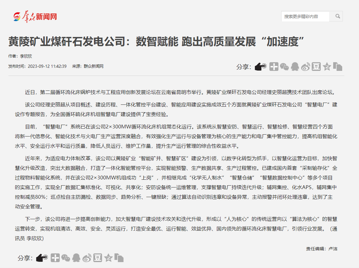 該公司經(jīng)理史麗超從項目概述、建設(shè)歷程、一體化管控平臺建設(shè)、智能應用建設(shè)實施成效五個方面就黃陵礦業(yè)煤矸石發(fā)電公司“智慧電廠”建設(shè)作專題報告,為全國循環(huán)硫化床機組智慧電廠建設(shè)提供了寶貴經(jīng)驗。