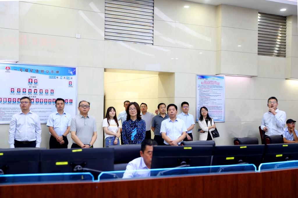 在一號煤礦智能調(diào)度指揮控制中心,束華一行詳細了解了智能管控云平臺、基于動態(tài)地質(zhì)模型大數(shù)據(jù)融合迭代規(guī)劃控制策略的智能開采技術(shù)、“四治理一優(yōu)化+AI+NOSA”安全管理體系、煤礦智能安全風險一體化防控平臺等煤礦智能化系統(tǒng)建設(shè)及運行情況。