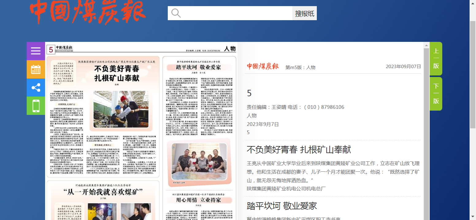 王亮從中國礦業(yè)大學(xué)畢業(yè)后來到陜煤集團(tuán)黃陵礦業(yè)公司工作,立志在礦山放飛理想。他和生活在成都的妻子、兒子一個(gè)月才能團(tuán)聚一次。他說:“既然選擇了礦山,就無怨無悔地?fù)]灑熱血。”