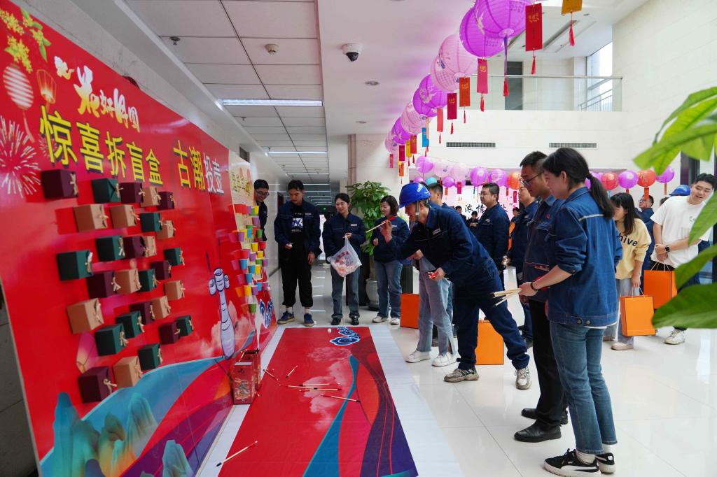 投壺游戲獲勝的職工可繼續(xù)進(jìn)行“飛運(yùn)乒乓球”游戲,兩場(chǎng)游戲都獲勝就可以獲得一次拆盲盒機(jī)會(huì),“神投手”們完成兩輪小游戲后激動(dòng)地拆開盲盒,有人抽到了精美的團(tuán)扇、宮燈,有人抽到了香甜的月餅、蘋果,每個(gè)人的臉上都洋溢著喜悅的笑容。