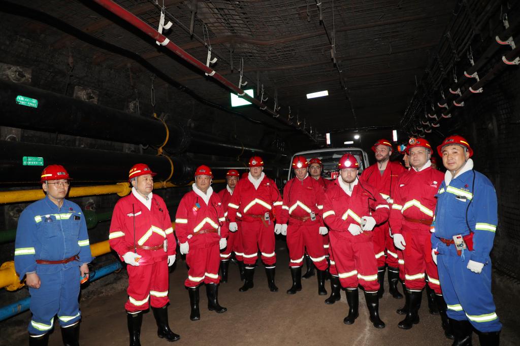 謝爾蓋-季姆琴科一行深入一號煤礦井下1010智能化綜采工作面,實地觀摩了違章行為智能風險識別、語音報警、聯(lián)動閉鎖等項目展示,雙方圍繞智能采煤、安全監(jiān)測系統(tǒng)等智能化建設(shè)情況進行了探討交流。