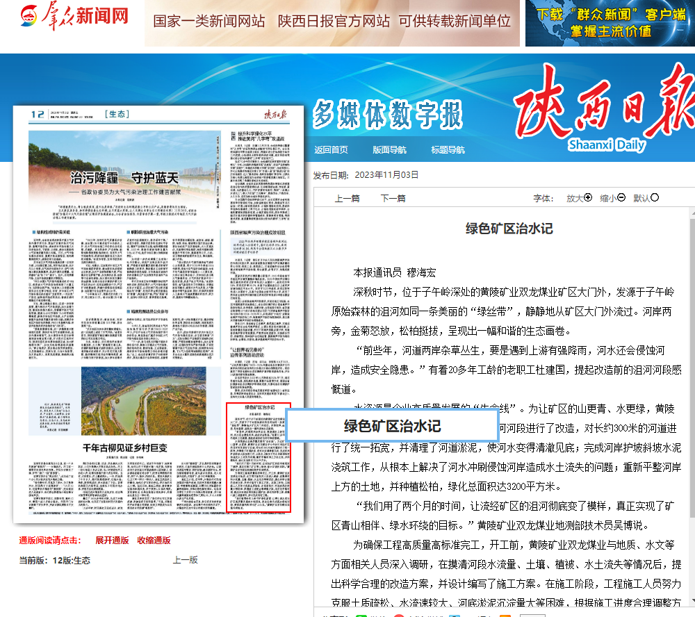 “我們用了兩個(gè)月的時(shí)間,讓流經(jīng)礦區(qū)的沮河徹底變了模樣,真正實(shí)現(xiàn)了礦區(qū)青山相伴、綠水環(huán)繞的目標(biāo)?!秉S陵礦業(yè)雙龍煤業(yè)地測部技術(shù)員吳博說。