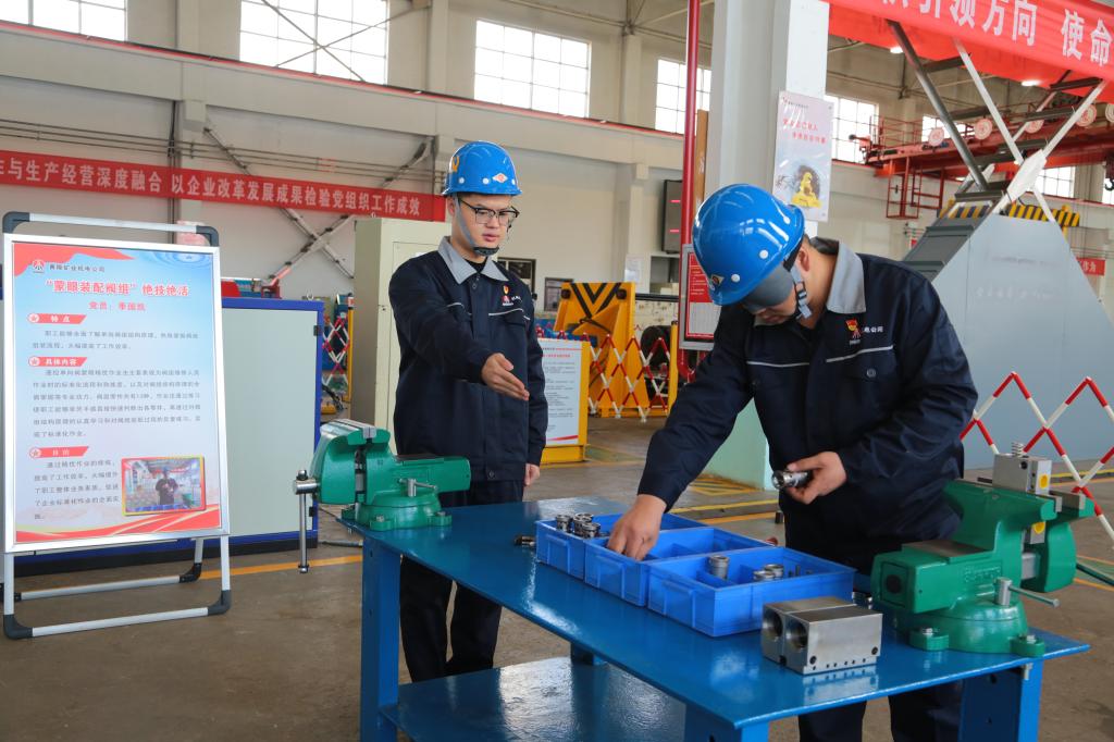 “蒙眼組裝單向閥短時間內能做到準確無誤,動作嫻熟干練,體現(xiàn)出職工崗位基本功很扎實!”在觀摩完職工蒙眼組裝液壓單向閥功力展示后,省國資委黨委書記任國和功力展示黨員季國凱進行了交流,并對其扎實的基本功給予夸贊。
