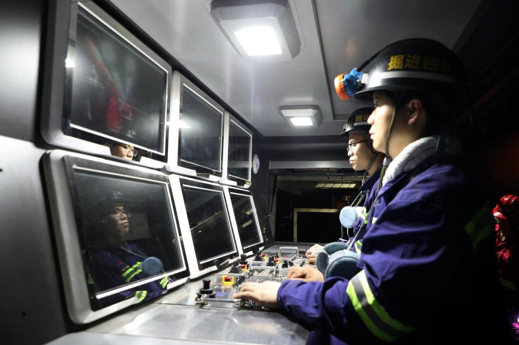 “相比以前,現(xiàn)在的掘進(jìn)工作,工人們只需拿著遙控器監(jiān)督指揮機(jī)器干活,自動(dòng)定位、全斷面掘進(jìn)、自動(dòng)打錨桿上網(wǎng),所有工序一氣呵成。”該礦掘進(jìn)四隊(duì)隊(duì)長(zhǎng)成飛對(duì)新裝備贊不絕口。