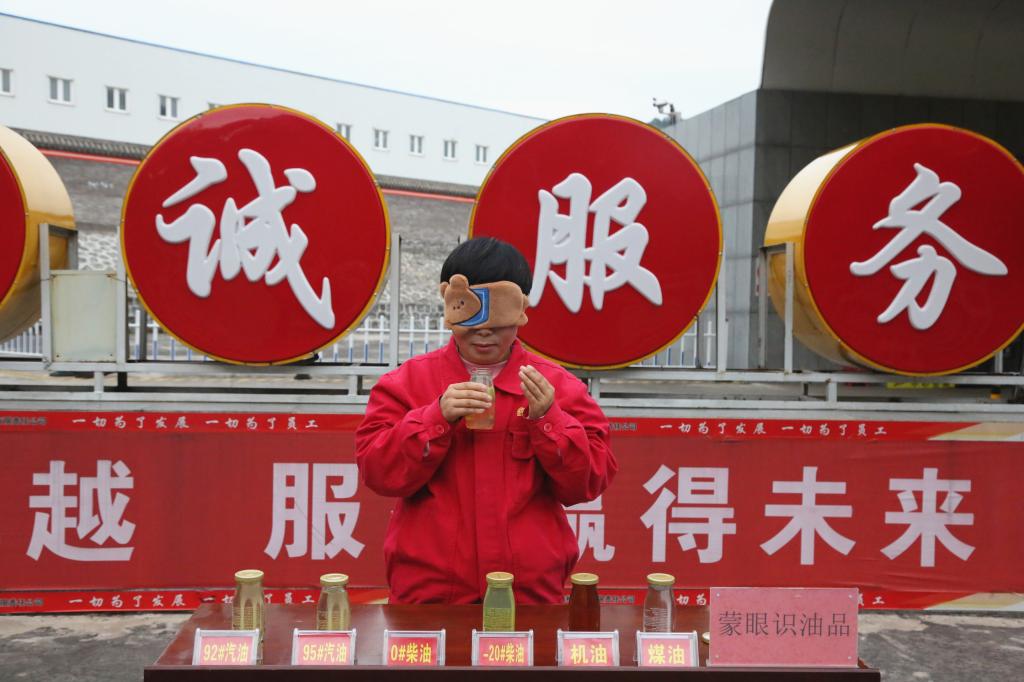 “92#汽油?!薄安裼汀!痹诼毠そ^技絕活展示中,加油員王雪偉的“蒙眼識油”贏得了一片掌聲。