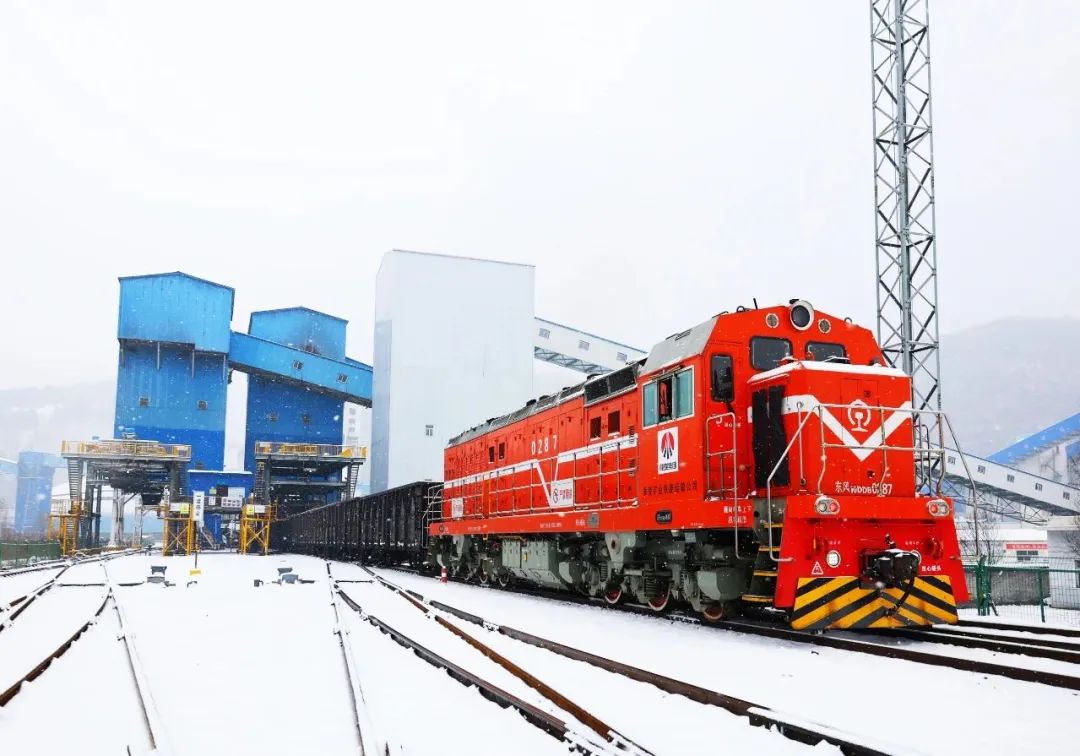 在二號(hào)煤礦鐵路快速裝車(chē)站,一列列滿載“烏金”的列車(chē)迎著漫天大雪正快速出站,伴隨著此起彼伏的汽笛聲,現(xiàn)場(chǎng)一片繁忙。