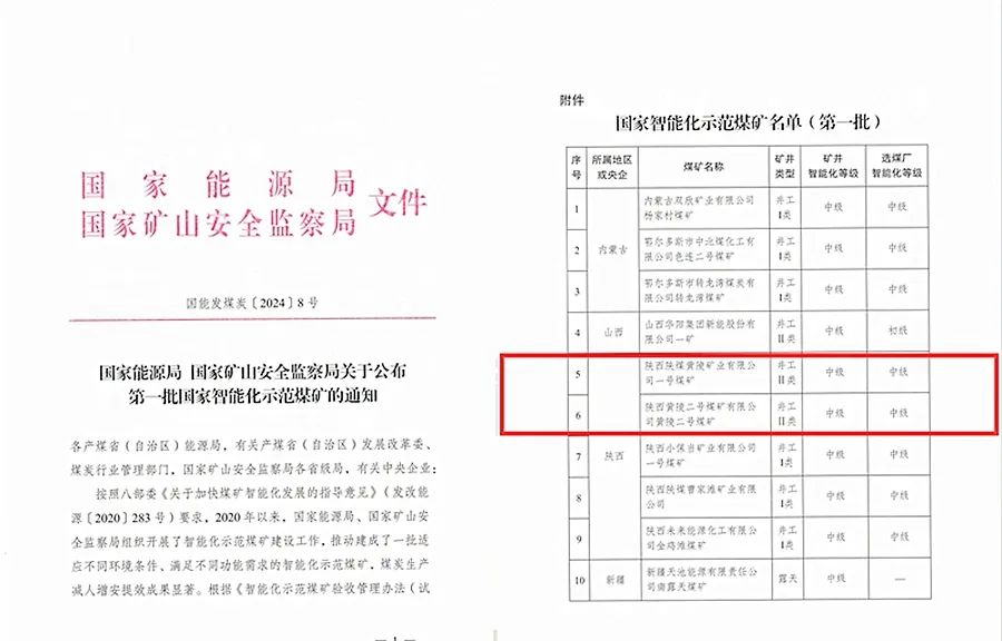 近日,國家能源局公示了第一批47處國家智能化示范煤礦建設(shè)名單,黃陵礦業(yè)公司所屬單位一號(hào)煤礦、二號(hào)煤礦赫然在列。