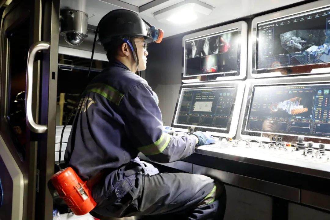 機(jī)聲隆隆爭春光,一線處處生產(chǎn)忙。2月21日,穿過一路喜慶的紅燈籠,走進(jìn)燈火通明的生產(chǎn)調(diào)度指揮中心大廳,只見綜采一隊(duì)地面遠(yuǎn)程操控員楊東峰輕點(diǎn)5G平板電腦上的“一鍵啟動”,在地面生產(chǎn)指揮中心中央大屏4K高清畫面可以清晰地看到,井下1013“5G+透明地質(zhì)”智能化綜采工作面的采煤機(jī)滾筒飛轉(zhuǎn),液壓支架“臂膀”不停來回伸縮,黑燦燦的“烏金”嘩嘩落下,被輸送帶源源不斷地送往地面。