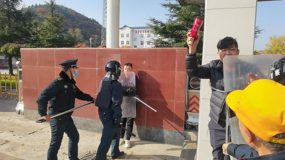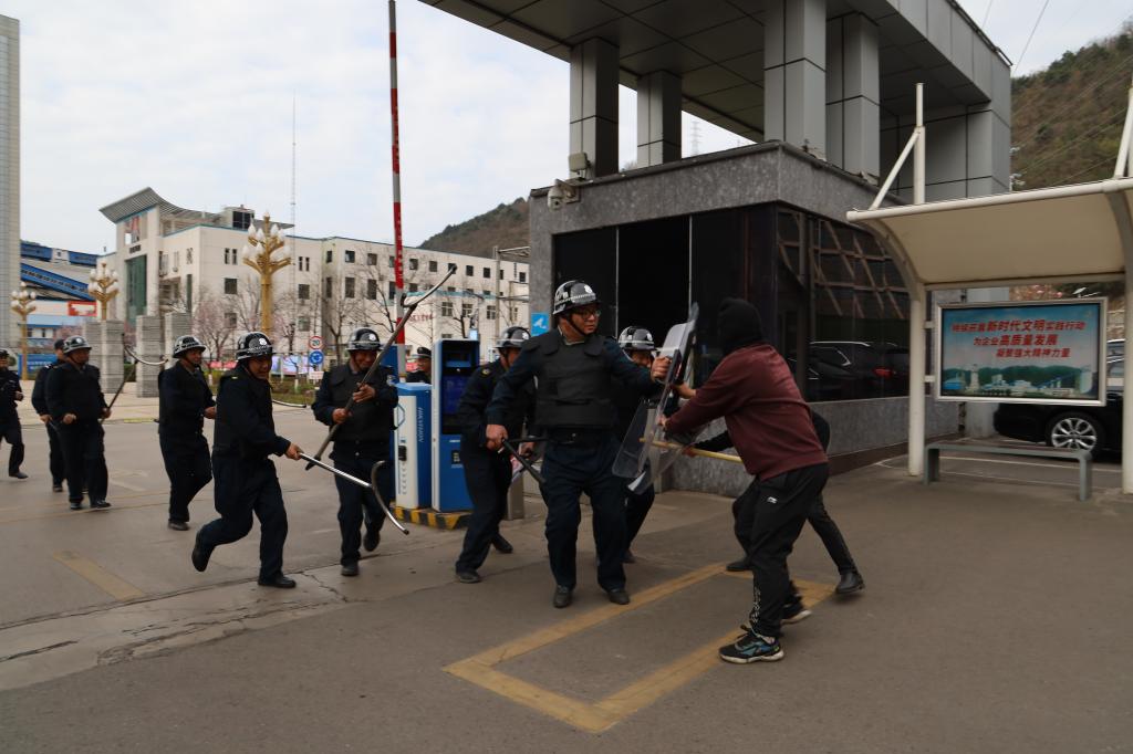 4月11日,二號煤礦開展2024年反恐防暴演練。兩名歹徒手持棍棒,以外訪職工為由欲強行進入二號煤礦,礦區(qū)保安、護礦隊迅速出動,最終在安保人員通力合作下,將歹徒制服并扭送派出所。