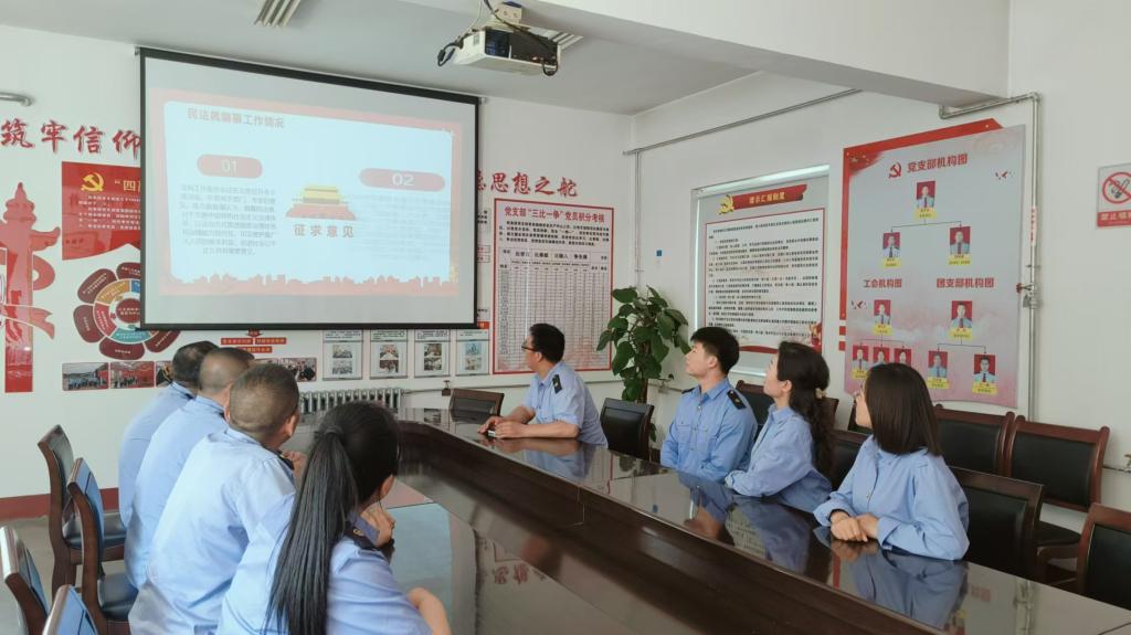 活動期間,通過召開民法典專題會、設(shè)置展板、發(fā)放相關(guān)法律宣傳頁等方式,向干部職工宣傳普及民法典知識。