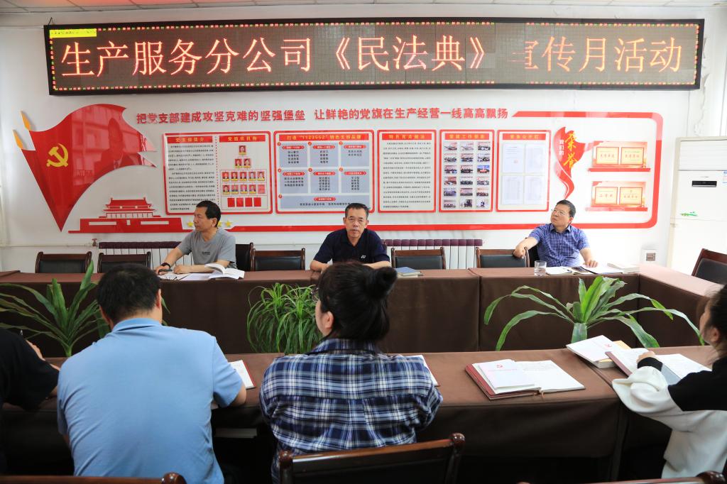 連日來,生產(chǎn)服務(wù)分公司以“民法典宣傳月”為契機(jī),開展以“美好生活·民法典相伴”為主題的系列宣傳活動,著力提升企業(yè)干部職工對《中華人民共和國民法典》的知曉率與認(rèn)知度。