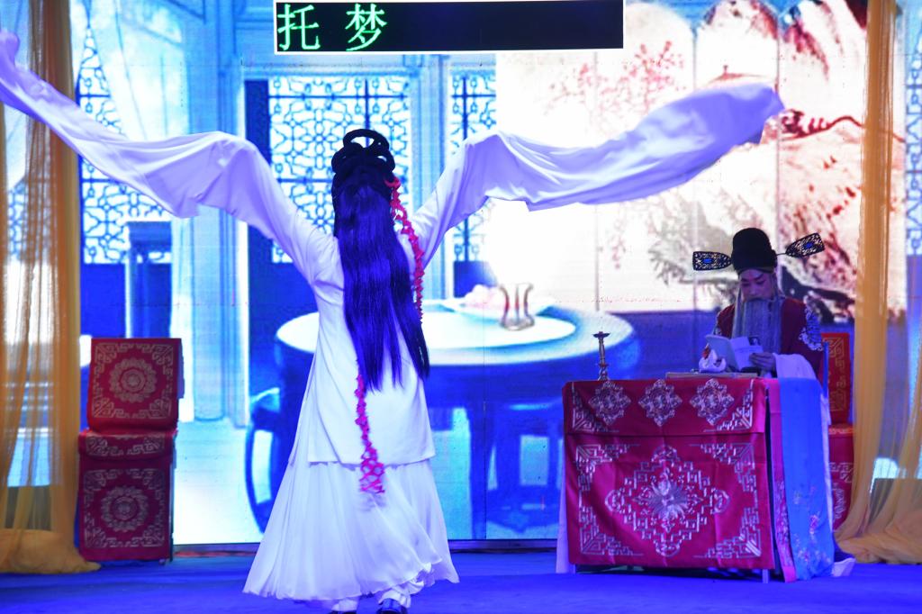 還未及將周?chē)鷪?chǎng)景看完,戲已轉(zhuǎn)到了《托夢(mèng)》這一場(chǎng),戲臺(tái)上燈光陰冷,氛圍極為詭異,未見(jiàn)人,先聞聲:“長(zhǎng)相思,盼相會(huì),忠親天涯淚紛紛,泣血含冤歷三歲,清風(fēng)送父歸……”唱腔悲切幽怨,飄忽忽,一襲白衣竇娥出場(chǎng)來(lái)。聽(tīng)得那觀眾們抹起眼淚來(lái),為這冤死的竇娥叫屈。那竇娥的水袖甩得很是流暢,功底很是到位,戲臺(tái)兩旁的板胡,梆子傳出的曲調(diào)聽(tīng)著就不由讓人陷入悲傷的情緒中去,這是秦腔曲調(diào)的特點(diǎn),我便是從這些調(diào)調(diào)中開(kāi)始體會(huì)千百年來(lái)秦人如何抒發(fā)感情的。開(kāi)始喜歡上秦腔。以前聽(tīng)不懂唱詞,后來(lái)的戲班子演出背景都是電子屏了,將唱詞都打在屏幕上,這下更能理解戲曲表演的內(nèi)涵了,唱詞寫(xiě)得是真好,你看竇娥那唱詞:“長(zhǎng)夜漫漫心傷透,不知春夏與秋冬。屈死陰曹三年久,孤魂飄飄無(wú)處投”這和白居易《長(zhǎng)恨歌》中“上窮碧落下黃泉,兩處茫茫皆不見(jiàn)”意境很是相近。