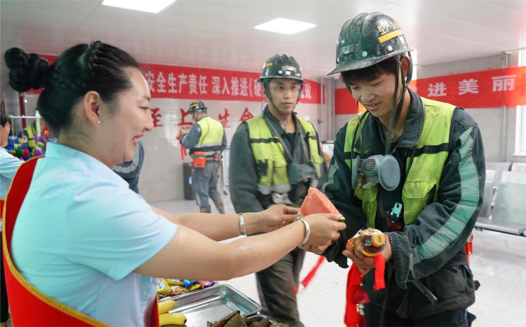 一個個軟糯可口的粽子,一根根寓意平安的五彩繩,一聲聲飽含真情的囑托,一張張洋溢著幸福的笑臉……6月5日雙龍煤業(yè)井口入井處的早晨,洋溢在一片濃濃的溫馨之中。