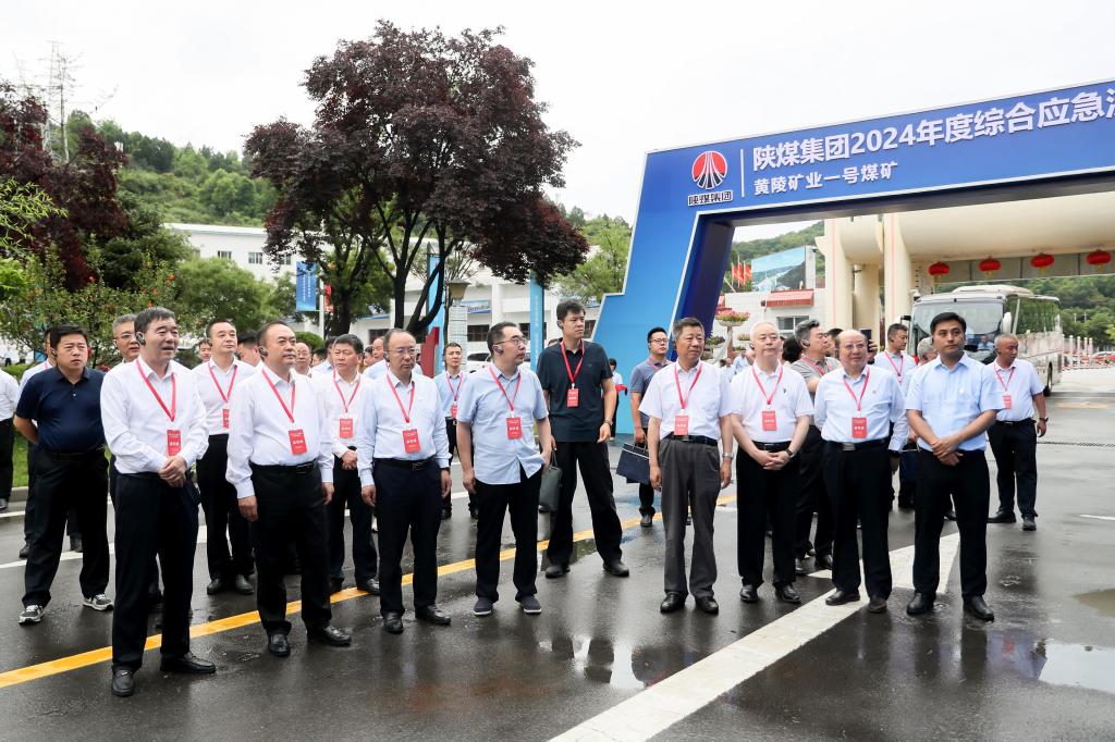 陜西省國(guó)資委黨委委員、副主任汪亮,省應(yīng)急管理廳總工程師曹?chē)?guó)瑞,國(guó)家礦山安全監(jiān)察局陜西局救援指揮中心主任鐘楠,省能源局總工程師黨宏偉,省國(guó)資委二級(jí)巡視員白宏偉,省消防救援總隊(duì)作戰(zhàn)訓(xùn)練處處長(zhǎng)于軍利,陜煤集團(tuán)副總經(jīng)理杜平,陜煤集團(tuán)安全監(jiān)察部、環(huán)保監(jiān)察部總經(jīng)理王西才,黃陵礦業(yè)公司領(lǐng)導(dǎo)班子成員,以及省國(guó)資系統(tǒng)相關(guān)單位、部門(mén)負(fù)責(zé)人,陜煤集團(tuán)各板塊所屬企業(yè)相關(guān)負(fù)責(zé)人共180余人觀摩了本次演練。陜煤集團(tuán)總經(jīng)理助理李厚志主持開(kāi)幕式。